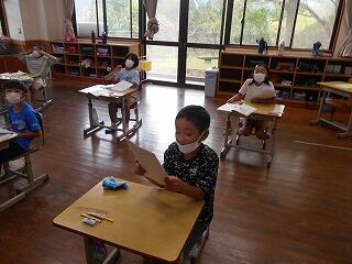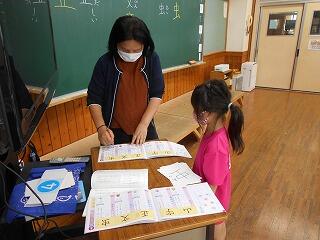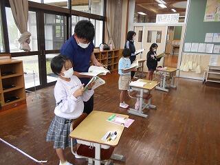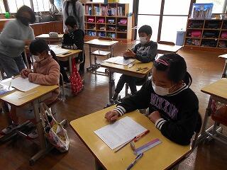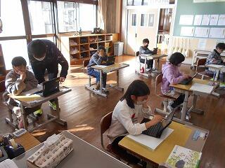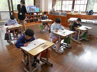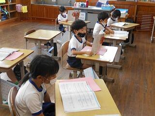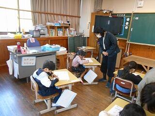 1年生の教室では、鍵盤ハーモニカの練習をしていました。一人ずつ弾けるようになった曲を紹介していました。それぞれの子どもが、自信をもって演奏することができていました。ちょっと見ないうちに随分成長しているんだなと驚かされました。