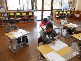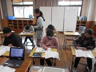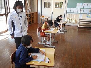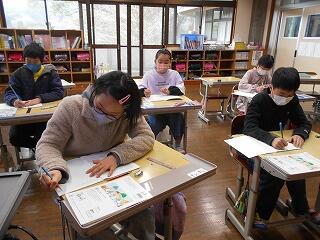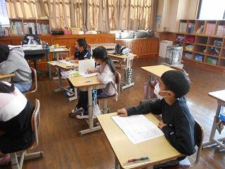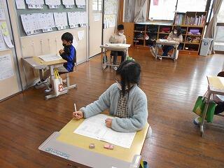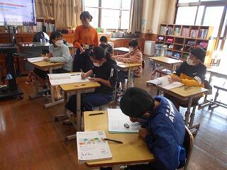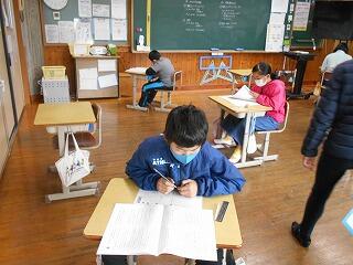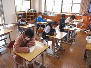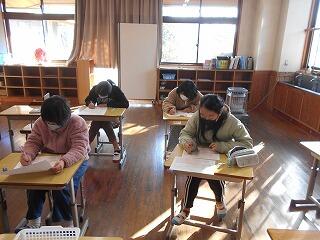 学期末が近づいているので、どの学級でもテストが行われています。学習のまとめと学んだ事がきちんと身に付いているのかを確認するものです。このテストが終わると楽しい冬休みが待っています。がんばれ、子どもたち。