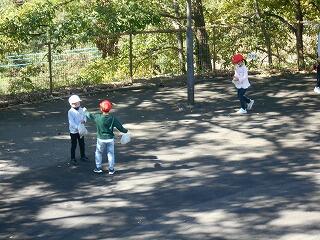 朝と昼の気温の差が大きくなりました。昼休み時間に運動場で元気に走り回る子どもたちは、汗びっしょりでした。1年生は、ブランコやターザンロープなどで楽しそうに遊んでいました。