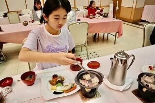 1日目、午後の活動の様子とホテルでの夕食の様子の写真が届いていました。今朝の連絡では、5名ともぐっすり眠ることができ、元気に過ごしているということでした。