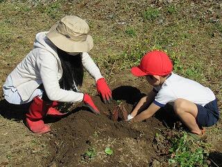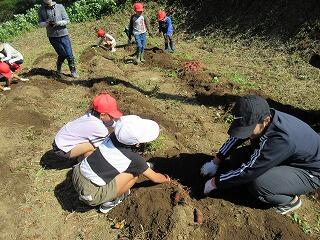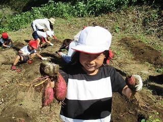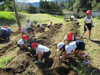 1・2年生が、いもほりをしました。保護者の方々に準備していただいた畑で育てていたものです。しっかりと収穫することができました。ご協力いただいた皆様、ありがとうございました。