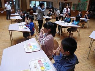3時間目に全校児童で、「味覚の授業」を行いました。宮崎市から来ていただいた講師の先生から、味覚について教えて頂きました。子どもたちは、とても真剣にそして、楽しみながら授業に参加していました。