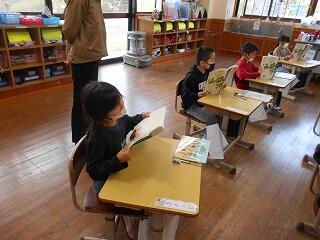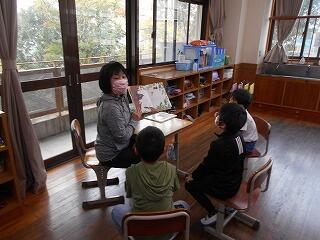 今朝は、どんぐりの森の会の方々による読み聞かせからスタートしました。あいにくの雨だったのですが、とても楽しげに読み聞かせを聞いていた子どもたちでした。今週も、元気にがんばってほしいと思います。