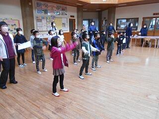 音楽大会の収録に向けて全校音楽を行いました。1回目ということで、並び方や歌う順番の確認などを行いました。各学級で練習してきていたので子どもたちは、思ったよりも上手に歌を合わせることができていました。振り付けの指導もありましたが、みんなのりのりで振り付けを覚えていました。
