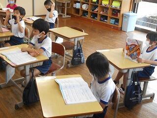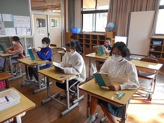とてもいい天気でした。昼休み時間を待ち遠しく思っているようです。今朝は、図書委員会の子どもたちによる読み聞かせが行われました。なかなか上手でした。