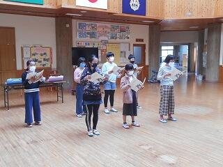 今朝は、18日(土)の学習発表会のオープニングの練習でした。久しぶりに全員での合唱を練習しました。思っていたよりも子どもたちは、とても上手に歌うことができていました。本番が楽しみになりました。