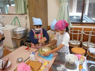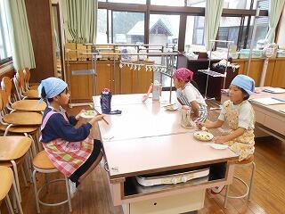 久しぶりの雨でしたが、気温が高かったので、とても過ごしやすく感じました。2年生が、畑から収穫したサツマイモを使って「いもきんとん」を作っていました。とてもおいしかったです。