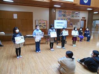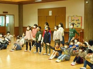 5・6年生の有志が、昼休み時間に演劇(?)を披露してくれました。サンタさんの話でした。ほぼ全校の子どもたちが観劇しました。自分たちで考え、自分たちで配役も決め楽しんでいたようでした。明日は、雪の予報が出ています。天気がひどくならないといいなと思っています。