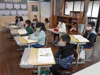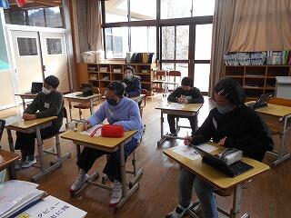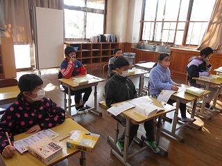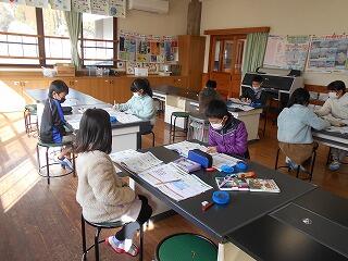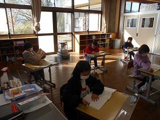 午前中は、雪が舞い、午後からは気温が低くなりました。テレビ等で寒波について放送されてますが、今夜からより寒くなるようです。体調には、気を付けてほしいと思います。子どもたちは、全員登校し、しっかりと学習に取り組んでいました。
