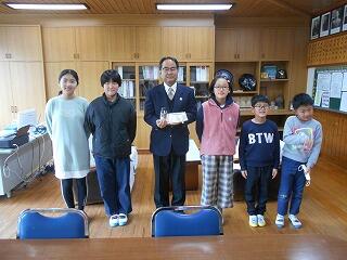高千穂町社会福祉協議会の方へ、昨年末に集めた赤い羽根共同募金のお金を手渡しました。高千穂町内で困っている人の暮らしに役立ててほしいと子どもたちが伝えていました。子どもたちの善意が伝わるといいなと思います。