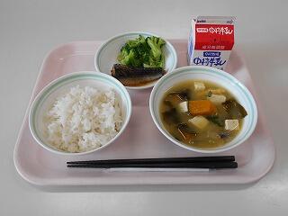 麦ごはん、牛乳、いわし梅煮、ボイルブロッコリー、かぼちゃのみそ汁