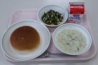 ミルクパン、牛乳、神楽うどん、すみそあえ