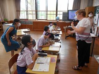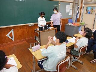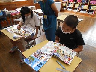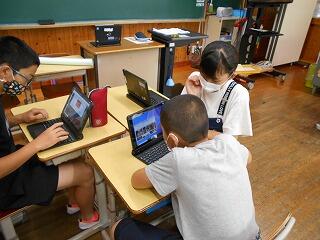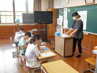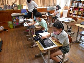 1年生は、タブレットを使って「早口ことば」を調べていました。図書室の本で探すよりも簡単でたくさんのことを調べられそうでした。2年生は、かけ算九九の暗唱をがんばっていました。覚えるのが大変なようでした。4年生は、タブレットの使い方の確認をしていました。担任の先生が楽しそうでした。5年生は、理科で流れる水の働きの学習でした。6年生は、英語の学習で「20年後の同窓会」を想像して、住んでいる場所や仕事についてお互いに質問をしていました。英語での会話が、上手でした。