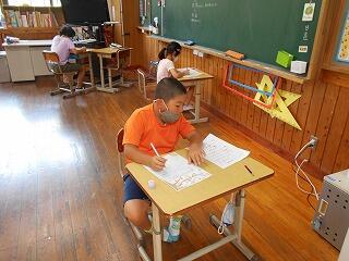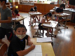 とても気持ちのよい1日となりました。5・6年生は、朝から習字を行っていました。どちらも真剣に取り組んでいました。練習することでどんどん上手になっていました。それから、4年生は、百人一首をしていまいた。2年生もしているのですが、2年生の方が素早くとりそうな感じでした。がんばれ4年生。ちなみに2年生は、かけ算九九の7の段を学習し、覚えるためになんども繰り返し声に出して唱えていました。7の段は、覚えるのに苦労します。がんばってほしいと思います。1年生は、漢字の学習でした。ずいぶん漢字が書けるようになっています。