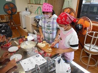 今日から7月(文月)になります。梅雨の影響で、蒸し暑い1日でした。5・6校時に、4・5・6年生のクラブがあり、お菓子作りが行われました。子どもたち、とても上手に作ることができていました。