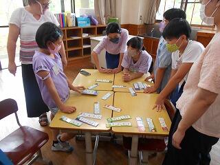 クラブの時間は、5色百人一首を楽しみました。4~6年生が学年を問わず、真剣に札を取り合う姿は、素晴らしいものでした。