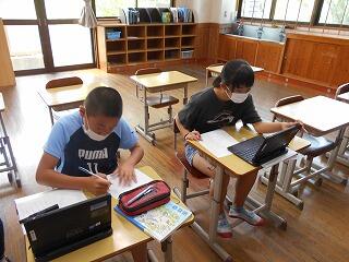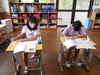 今日から5年生は宿泊学習に行っています。複式学級の6年生はお留守番です。