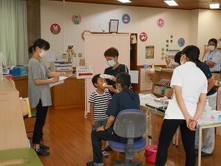 今日は、1年生が初めて絵の具を使う授業を行っていました。水彩絵の具を初めて使うということで、色をまぜていろいろな色を作る活動をしていました。それから、昼休み時間に耳鼻科検診が行われました。全員検診を受けることができました。