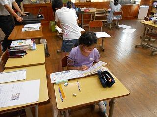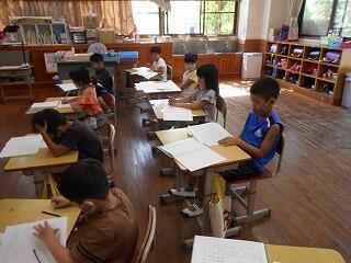 学校では通常通り、授業を進めていました。1年生は漢字の書き取りをしていました。2年生は文章を書いていました。4年生と6年生は、昨日の続きをしていました。みんな落ち着いて授業に集中していました。