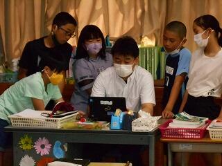 今日は、5年生が調理実習を行っていました。それから、インド在住の亀川先生とオンラインでつながり、国際理解教育の活動を行うこともできました。微妙な時間差に、インドと日本との距離を感じました。