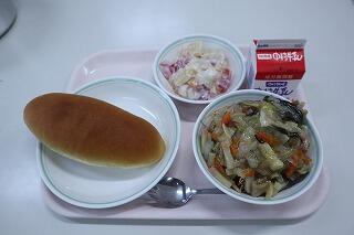 ミルクパン、牛乳、スープスパゲティ、コーンサラダ
