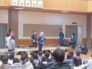 1・2年生は、「昔の遊び」です。あやとりや羽子板、こま、竹とんぼなど、おばあちゃん方と一緒に楽しく昔の遊びをしました。道具を操っての遊びは結構難しそうでした。