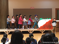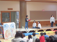 続く1年生は、初めに自作の楽器で楽しく歌を歌ってくれました。そして、メインの劇「大きなかぶ」。国語で学習しましたが、「押方バージョン」で学級全員が登場し、さらには台詞が「高千穂弁」。かわいく微笑ましい発表でした。