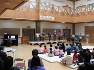 子どもたちが、声を出す楽しさや相手に自分の気持ちを伝えることのよさを感じ取り、人前でも堂々と自分の考えや意見を述べられるようにと、5月から取り組みを始めた「表現集会」。この1年間で、子どもたちは人前で発表することにかなり慣れてきたようです。さらに自信をもって自分のよさや持ち味を表現できる、輝く「やかたの子」となるよう、次年度も引き続きこの取組を継続していきます。
