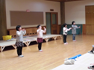 2番手は、1年生でした。「キラキラぼし」の合奏、歌って振り付けをしながらの打楽器演奏、そして「てとてとてとて」の群読をしてくれました。一人一人違う色の手袋をはめて、振り付けをしながら大きな声で発表しました。長い詩でしたが、とてもよく覚えていました。最後は、手話もしながら歌ってくれました。「手」の力のすごさが良く伝わる発表でした。