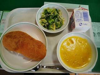 『揚げパン、パンプキンシチュー、和風サラダ』