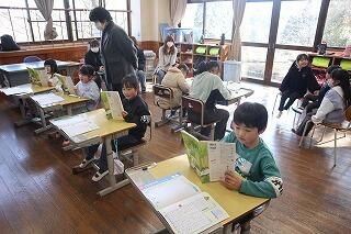 2月3日(火)の午後に新入学児童説明会を行いました。来年度は3名の子どもたちが押方小学校へ入学予定です。この日は、まず1・2年生の様子を参観しました。1・2年生の子どもたちは、お兄さん、お姉さん気分になって、いつものように真面目な学習態度を見せていました。その後、一緒にじゃんけん列車をしたり絵を描いたりして過ごしました。4月の入学式が楽しみです。