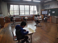 教室内は、鉛筆の音や問題のページをめくる音くらいしか聞こえず、シ~ンとして、子どもたちは集中して問題に向かっていました。