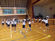 子どもたちは、毎回、とても集中して元気よく練習を頑張っています。今日の練習は、「開会式・エール交換・がまだせ節・応援」でした。今日も体育館の中に気合いの入った元気な声が響きました。運動会当日が、ますます楽しみになってきました。