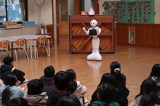 1月7日(水)は始業の日でした。朝の寒い中、地域の方や保護者の方に見守られながら安全に集団登校することができていました。始業式では、4年生の代表児童が3学期の目標を堂々と発表していました。今年度から配置されているPepperからは新年のあいさつがあり、子どもたちは笑顔で聞いていました。