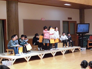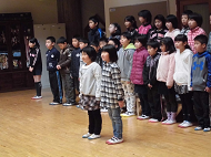 休憩をはさんで、2・3年生の発表。最初に縄跳びを披露しました。みんな上手に跳びました。次に「おむすびころりん」と「三年とうげ」の群読をしました。元気な大きな声で、振りも入れながらおもしろおかしく演じました。最後に、一人一人自分で作った詩を朗読してくれました。気持ちや思いのこもった素敵な詩ばかりでした。