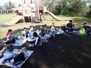 10月18日(金)に秋の遠足を実施しました。午前中は1・2年生は延岡市立図書館や城山、3・4年生は延岡市消防署、5年生はケーブルメディアワイワイとそれぞれの見学場所で各学年の学習を行いました。お昼からは全学年が一緒になって愛宕山でお弁当を食べたり、遊具等で遊んだりしました。最後に展望台に上って眼下に広がる延岡市内の街並みや太平洋の絶景を見て、大興奮していました。