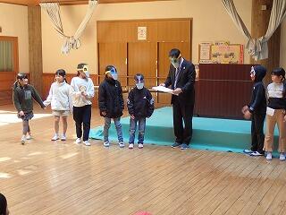 3月23日(月)の昼休みに子どもたちが企画した劇やクイズをしました。内容は、還暦を迎えた校長先生へのお礼を伝える劇とクイズでした。仮面ライダーが好きな校長先生のために、お面と変身ベルトまで作り、全員が書いたお礼の手紙もプレゼントしていました。子どもたちからの心温まるサプライズに幸せいっぱいの校長先生でした。