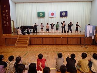 今まではグループごとに練習していましたが、今回の全校音楽4回目は、体育館で合同練習をしました。ステージ上の子ども達は、もう何十回も練習してきたかのようにとても上手でした。大きな声で歌ったり、元気よく踊ったりして、見ているこちらも楽しい気持ちになり、元気をもらえた感じです。発表当日まで約2週間、どこまで上手になるのか、とっても楽しみです。
