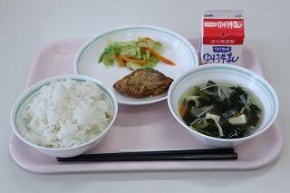 麦ごはん、牛乳、魚のしょうがみそかけ、野菜の炒め物、すまし汁