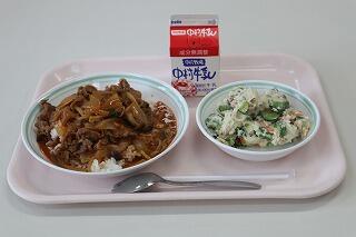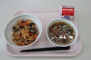 高千穂牛っと丼、牛乳、はちはい汁(ぬくもりランチ)