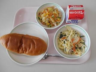 ミルクパン、牛乳、スープスパゲティ、コーンサラダ