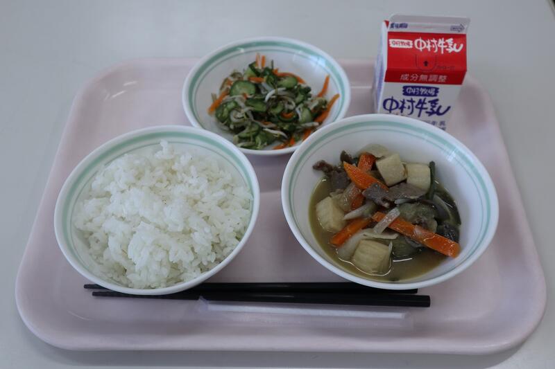 千切り大根の卵とじ、紀州汁、麦ごはん、牛乳
