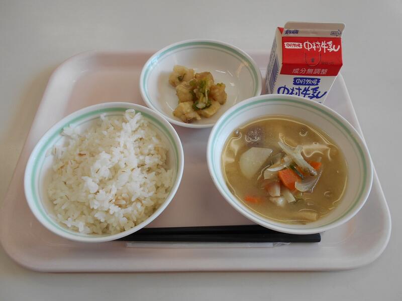 五目豆、豚汁、さつまいもごはん、牛乳