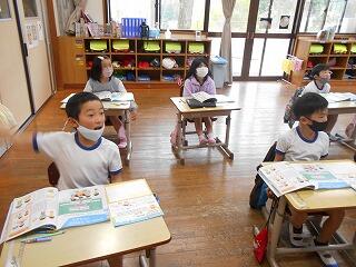 2年生の図工では、画用紙に「まど」を作る工作をしていました。先生が、代表的な「まど」を紹介して子どもたちが作っていました。どんな作品になるのか楽しみです。1年生は、音楽室で「きらきらぼし」に合奏の練習をしていました。難しそうにしていましたが、それぞれの子どもたちががんばって練習していました。他の学年も、楽しそうに学習に取り組んでいました。