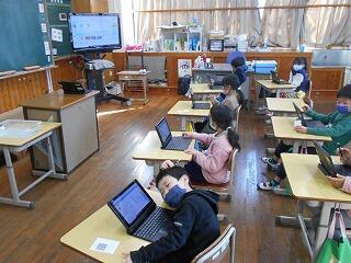 土曜日(22日)の深夜の地震にはびっくりしました。被害はなかったようですが、日頃から地震への備えをしておかないといけないと改めて考えさせられました。今日の子どもたちも、寒さに負けず、元気です。2年生は、1m定規を使って教室や広間の長さを測っていました。友だちと協力しての活動が楽しそうでした。