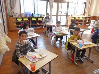 毎日のおいしい給食への感謝をする「給食感謝集会」が行われました。4人の委員会の子どもたちががんばっていました。クイズの中で、子どもたちの人気メニューの紹介があったのですが、1位は「神楽うどん」2位は「たこやきふう」でした。昨年は、1位が「たこやきふう」だったということで、少し好みが違ったようです。