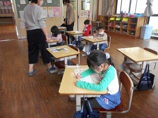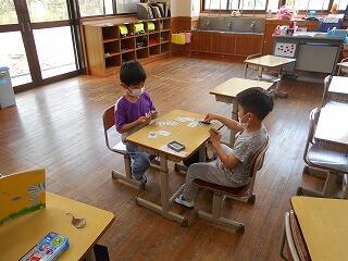 朝から雨模様で、昨日の気温と比べると、ずいぶん寒くなりました。子どもたちは、半袖、半ズボンで元気にしている子もいれば、寒いなあという子もいました。気温の変化が激しいので、体調管理には気を付けないといけません。