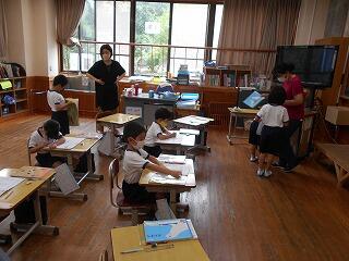 厳しい暑さが続いていますが、子どもたちは元気に活動しています。1学期のまとめをしている学級もありました。漢字や計算など、4月5月に学習した内容を忘れていることもあるようです。繰り返しやっています。