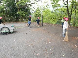 押方小は豊かな自然に囲まれている学校です。校内にも緑の木々がたくさんあります。そのため、落ち葉の量も大変多く、掃除をしても翌日にはまた大量の落ち葉がある状態です。子どもたちは雨の日以外、登校してきたらすぐに朝のボランティアで清掃活動をしています。ほぼ全員の子どもたちが自主的に活動に取り組んでいます。また、担任の先生方も子どもたちと一緒に活動しています。朝のボランティア活動は、先生方や高学年の子どもたちがお手本を示し、やってみせて、それを低学年の子どもたちが真似をして受け継いでいくという押方小のよい伝統の一つになっています。今日もきれいな学校になって気持ちのよい1日がスタートできます。