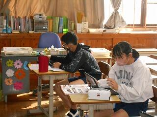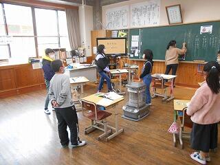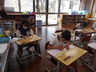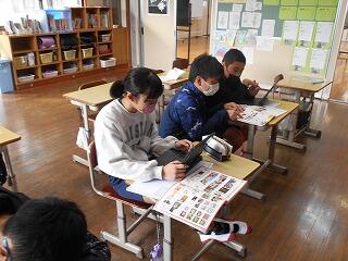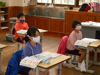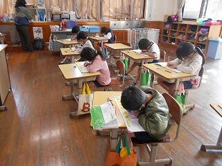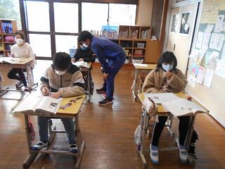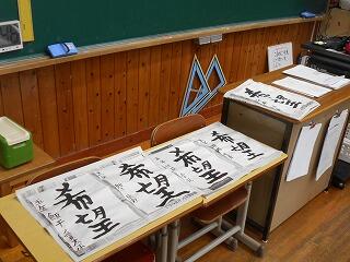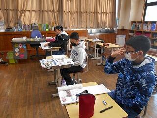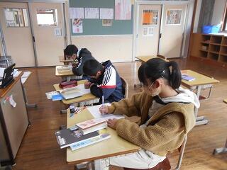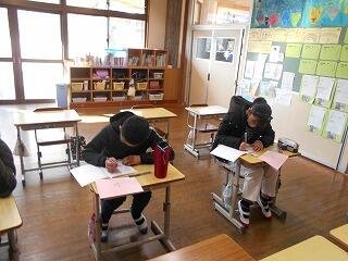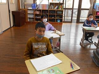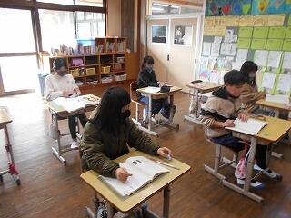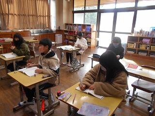 天気予報の中で雪が降るということだったので、寒くなると覚悟していました。給食後から雪が舞い、予想通りとても寒くなりました。体調を崩さないように気を付けてほしいと思います。今日は、5・6年生が習字をしていました。5年生の習字には間に合わず残念でした。6年生は、とても集中して書くことができていました。